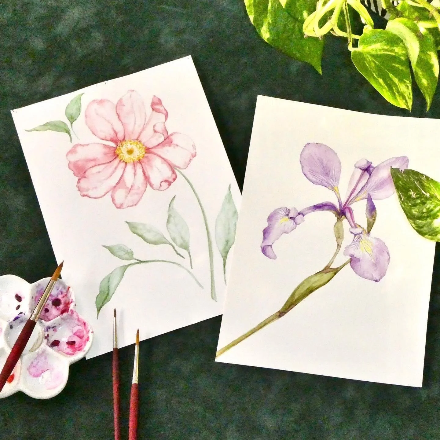 The artwork you will see in this collection are works I created in the last few years of beautiful flowers that I enjoyed in our garden. I am not a gardener by nature but my husband is, he is a landscape designer. I am so luck to have a steady flow of many different types of plants and flowers to admire. Sometimes the flowers get planted in our garden and sometimes they are for someone else. Either way I get to see and appreciate their beauty. I snap a few photo’s when a flower catches my eye usually when I’m walking our dog Luna or getting into my car. I’m happy to say, I now have large bank of inspiration just waiting to be painted, so many flowers so little time!